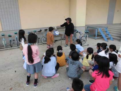 運動場に行って実際に砂の重さを量りました。1キログラムがどれくらいか,袋に入った砂の量を友達と比べて予想していました。少しの違いだと「惜しい」とか「もうちょっと」といった歓声が出ていました。