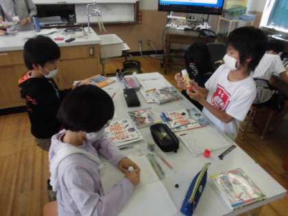 時間が経つと半月の位置はどのように変わるのか予想を立てました。西から動いているのか東から動いているのかいろんな予想が出てきました。なんとなく月の形や見える場所が変わっていると感じているようでした。