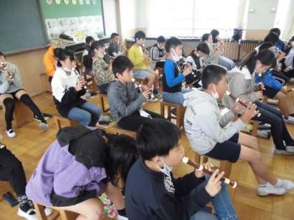 階名に少し不安がありますが,練習をした後,パートごとに分かれてリコーダーで演奏しました。息の入れ方に気を付けながらきれいな音色で演奏していました。