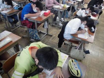 「額」「故」「旧」「規」の4つを学習しました。音読み訓読みを確認した後,お手本を見ながら丁寧になぞりました。はらいやはねをきちんと書けると字が美しく見えるので,意識して書いていました。