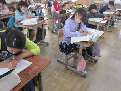 今までに学習したことを思い出して,重さの単位の「g」「kg」「t」から適切な単位を選んだり,単位の変換をしたりする問題に挑戦しました。