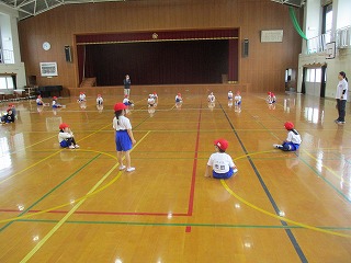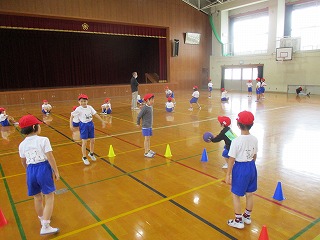 体育の学習で,ボール遊びをしました。相手にうまくボールを投げて渡したり,相手からうまく受け取ったりするにはどうしたらよいかを考え,みんなで話し合いました。お互いにうまくいくコツを教え合って,上手に受渡しができていました。
