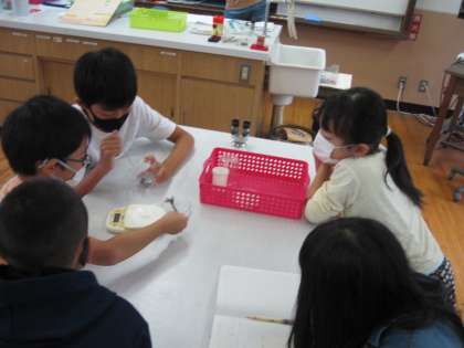 「限りなくとけるかなぁ。」「限りはありそうだけど,どれくらいまでなら溶けるのかな。」と予想をしてから,実験をはじめました。