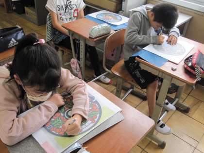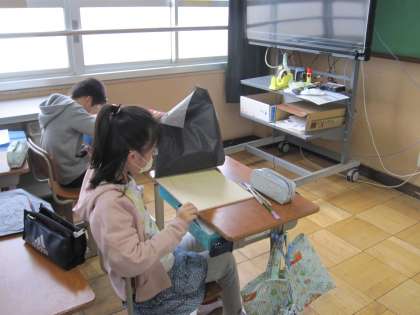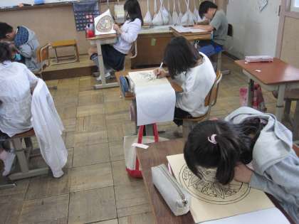 今日は,木版に自分の選んだ図柄を写し取る活動をしました。