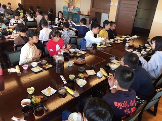 みんなお腹いっぱい朝ごはんを食べ,満足しました。地元の食材は最高でした。ごちそうさまでした!