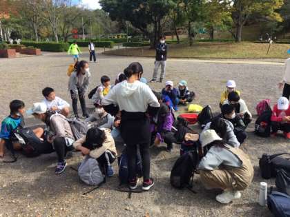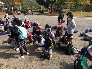 2時間弱ほどバスに乗っていたので,トイレ休憩をとっています。見学を前にちょっと休憩しつつ,この間に検温をしています。みんな元気で,活動を今か今かと待っています。