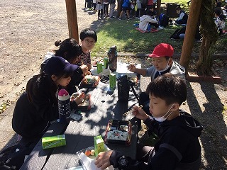 みんなで食べるご飯はやっぱりおいしいです。広い園内を見て,ちょっと疲れましたが,お昼ご飯を食べて元気になりました。