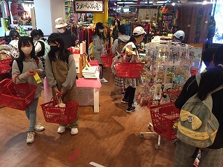 限られた時間でのお買い物。友だちと相談しながら,みんなうまく買い物をしています。