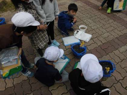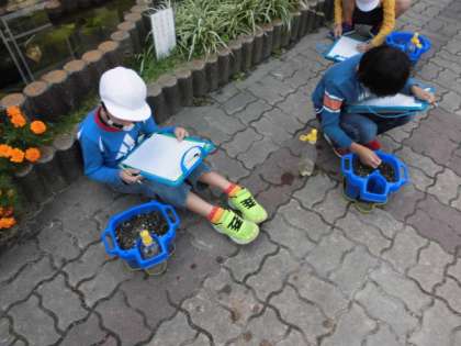 クロッカスを植えてから観察していますが,なかなか芽が出ません。今日も観察しに中庭へきましたが,小さな雑草が生えているだけでした。早く芽が出てほしいなぁ〜と思いながら,様子を観察していました。