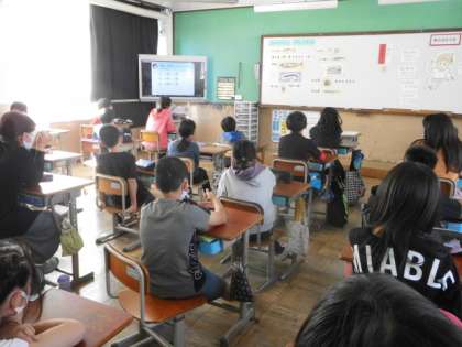 4校時,5−2で「魚の大切さを知り,進んで食べよう」をテーマに栄養教諭も入り学習しました。