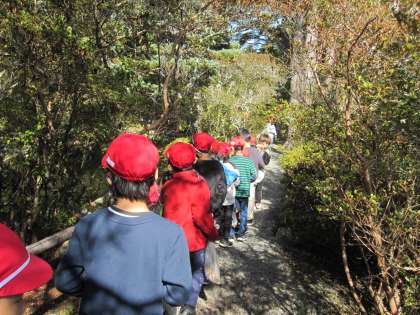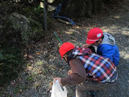 「あっ!これ,きれい!」「見て!かわいいどんぐり。」と,自分だけの“あきのたからもの”を見つけていました。