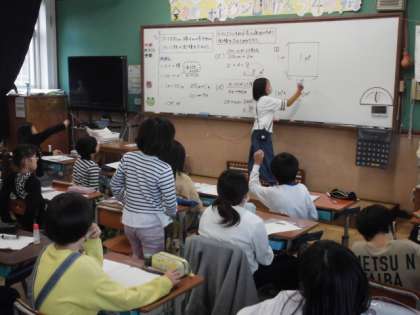 たて200cm横4mの掲示板の面積を求めようとしましたが,すぐには長方形の面積を求める公式が使えません。単位が入り混じっているのでどうしたらいいか考えました。単位をそろえると計算できることに気づいていました。