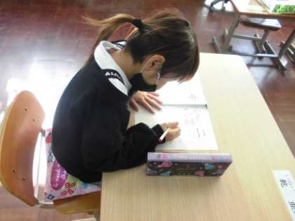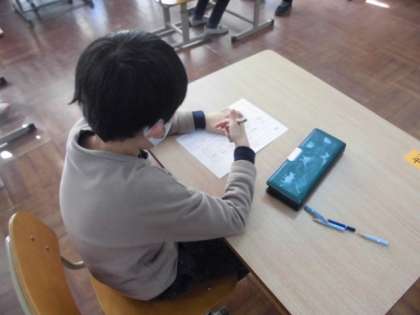 「木」や「中」などの漢字プリントをしました。書き順に気をつけながら丁寧になぞった後は,自分で書いていました。