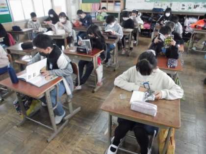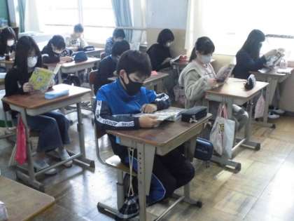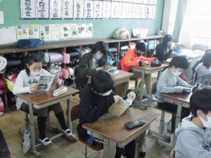 5年生は学校の図書館へ行って本を借りました。秋は,勉強するにもスポーツするにもとても気持ちのいい気候なので,借りた本を静かに読みました。静かに集中して読む雰囲気ができていたので,みんな本の世界に浸っていました。