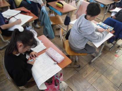総合的な学習の時間に本やパソコンを使って「地球温暖化」について調べてきました。自分たちが調べたことを新聞形式にまとめて発信することにしました。見出しをつけたり挿絵を入れたりすることで分かりやすくなっていました。