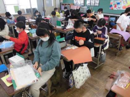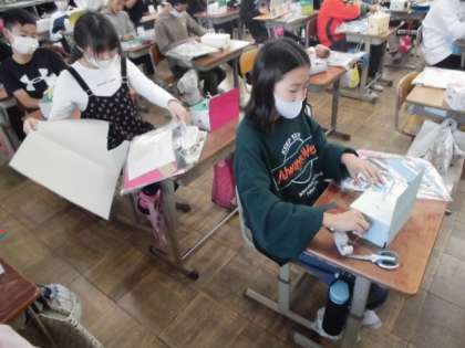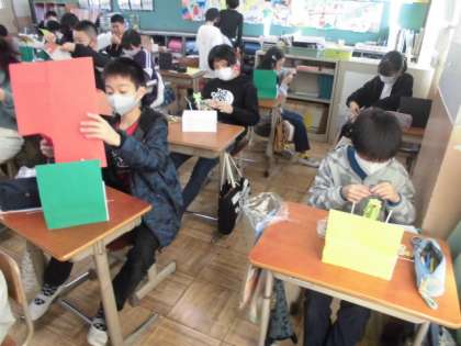クランクの仕組みを生かして,イルカがジャンプしたりロケットが飛んだりする様子を作っていました。細かい部分まで丁寧に作っており,自分の作品へのこだわりが感じられました。