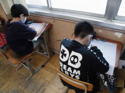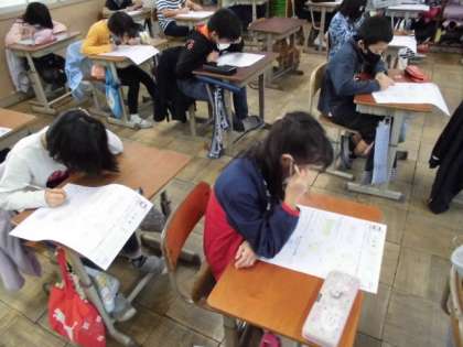 算数の時間には,面積のテストをしました。公式を使って面積を求める問題もあれば,単位を直す問題もありました。いつもよく考えて学習に取り組んでいるので,テストでもしっかり考えながら解いていました。
