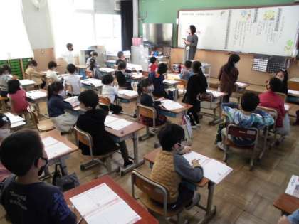 1年生のみんなは,学校生活にも慣れてきて,学校やおうちで宿題やお手伝い,勉強などいろんなことにがんばっています。道徳の時間には,おふろばそうじをもとにがんばり続けるとどんな気持ちになるか考えました。「きれいになると気持ちいい。」「みんなが喜んでくれると嬉しい。」というみんなのためにがんばることの大切さに気付けていました。