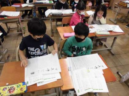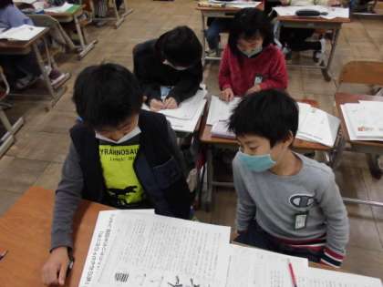 国語の時間では,説明文を学習しています。おもちゃの作り方が書かれている文章を読んで,「この順番だから分かりやすいな。」「この写真があるからいいな。」といった工夫やよさを見つけて友達と交流していました。