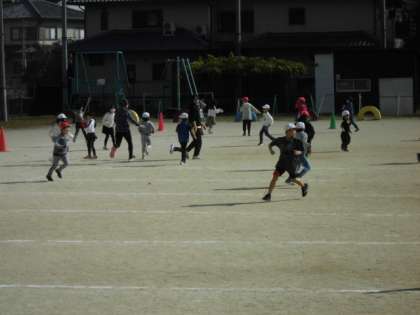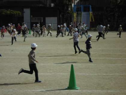 運動するにはとても心地の良い天候の中,2年生はみんなでスポーツ大会をして楽しみました。大会の最後には,先生が鬼となって鬼ごっこをしました。みんなできるだけ長い時間逃げようと一生懸命走っていました。いつも元気な2年生も楽しくいっぱい運動できました。