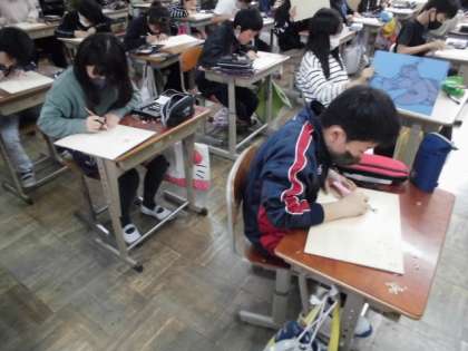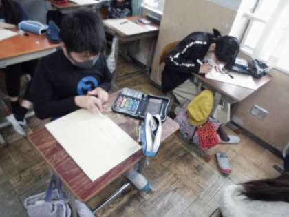 自分がリコーダーを吹いている姿を板に描けたので,今日は,彫刻刀を使って試し彫りをしました。板の裏に力加減や刃の向き,手の位置などに気を付けながら彫ってみました。うまく丸い形をくり抜けたりきれいな線彫りができたりしていました。