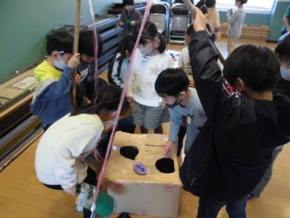 次は,1組さんがゲームコーナーを開いてくれました。2組さんが1年生を案内しながら一緒にゲームを楽しみました。