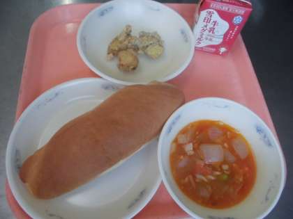 子供たちから,「スパイシーチキン」は,衣がカリカリしていて,肉がジューシーでスパイスもきいていて,美味しかったです。また食べたいです。『ミネストローネ』は,あっさりとした味で,玉ねぎの食感や豆の甘味があって,美味しかったです。と,感想をくれました。