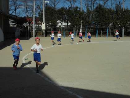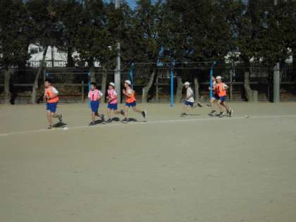 今日はみんな同じ距離を自分のペースで走り切るようにがんばりました。長い距離なので,走る続けられるペースが大事です。これまで学習してきた中でつかんだ自分で最後まで走り切ることができました。表情からは達成感がうかがえました。