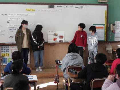 グループごとに行きたい国を紹介するポスターを作りました。どんなものが食べられるのか?どんなところへ行けるのか?について,クラスのみんなに英語で紹介しました。