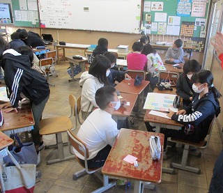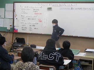 12月9日(水)の2時間目に,ゲストティーチャーに来ていただき,情報モラル教室を行いました。今回はネットへの投稿について,みんなで考えました。嘘の書き込みをした事例を通して,グループで意見を出し合い,「相手のことや,その後どうなるかを考えてから書き込む」や「感情的に書き込まない」ことが大切だと発表していました。