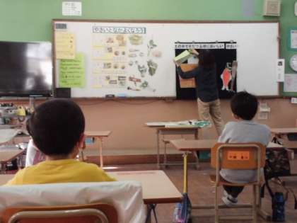 栄養教諭の泉原先生から土の中で育つ冬に美味しい大根や人参,ごぼうのお話を聞きました。毎日の給食には,いろんな野菜が使われています。しっかり噛んで食べると,野菜の味を感じることができます。体の調子を整えるのに必要な栄養もいっぱい入っているので,いろんな野菜をこれからも食べるようにしてほしいです。