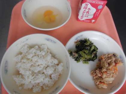 子供たちから「『おからツナ丼(具)』は,ご飯にのせて食べたら,とっても美味しかったです。『小松菜のごまいため』は,小松菜とごま・かつおの味が混ざりあって,美味しかったです。『フルーツ寒天』もとっても美味しかったです。」と,感想をくれました。