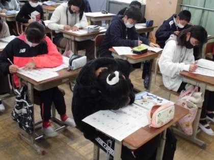 「What's your best memory?」と思い出に残る行事を相手に聞く言い方や「MY best memory is 〜」という聞かれたことに対して答える言い方も学習したので,例文をもとに交代で受け答えの練習をしました。その後,自分の思い出に残る行事を考えて書きました。