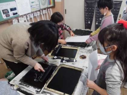 紙で作った自分の姿もようやくできたので,今日は,印刷しました。インクをつけるのは先生にしてもらいましたが,紙を版の上に重ねることや丁寧にこすることなどは自分でしました。ゆっくりはがすと,きれいに写っていました。