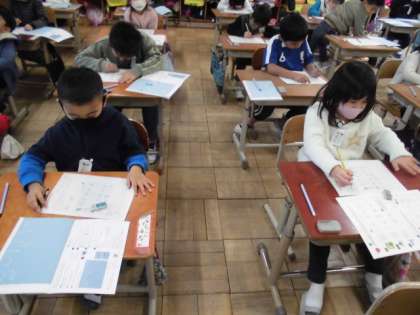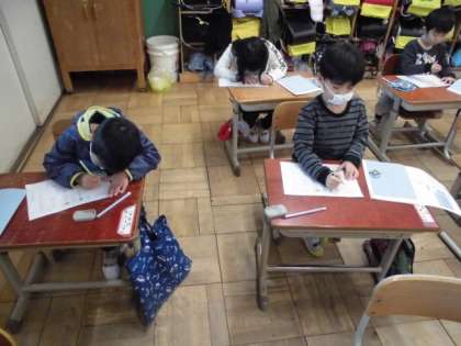 文字の形に気を付けて「日・田・二」の漢字を書きました。書写の時間なので,姿勢よく丁寧に書けるように,静かな雰囲気で取り組めていました。