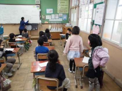 みんなはどんな時に「にこにこ」しているのか話し合いました。みんなでご飯を食べている時や一緒に遊んでいる時などニコニコしているそうです。もっとニコニコを増やすためには,自分でどんなことができるか考えました。「宿題を丁寧にする。」とか「学校の話をする。」など発表していました。