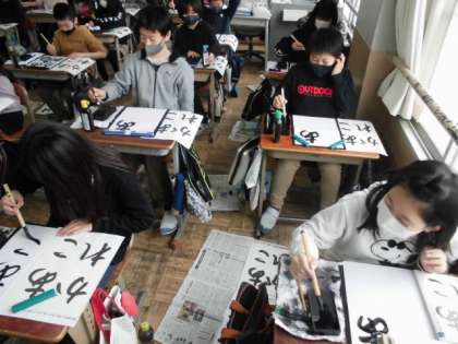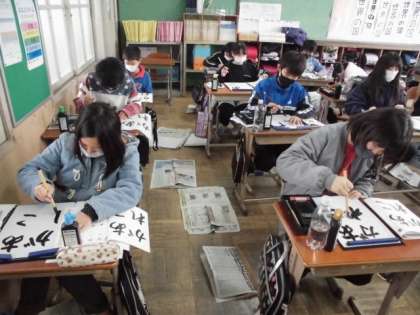 5年生は,書写の時間に「あこがれ」という文字を書きました。1枚の半紙に4つのひらがなを書くのは初めてなので,線のつながりやバランスを考えて書くのが難しそうでした。あと3か月すると,6年生になります。下級生のあこがれとなれるようにこれからもコツコツと頑張ってほしいです。