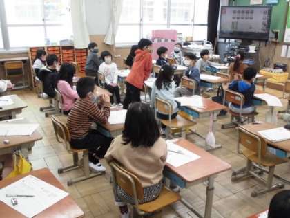 算数の時間には,2ケタの数字について学習しました。十のまとまりがいくつあるか十の位に書き,のこりの数を一の位に書きます。70のように十のまとまりしかない時は,一の位に「0」を書くことを知りました。