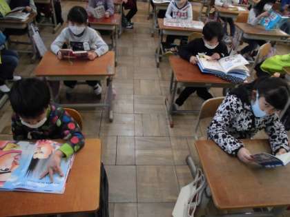 午後から学校の図書館に行って本を借りました。1学期は絵本が多かったのですが,物語を読んだり図鑑を見たりといろんな本を読むようになりました。本の世界に触れることで興味を広げてほしいです。