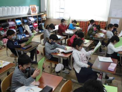 友達から書いてもらった自分のいいところを読んでみると,自分の得意なことを分かってくれていることや自分では気づかない面を教えてくれたことなどたくさん書いていて,じっくり読んでいました。読み終わった後に感想を聞くと,「うれしかった。」と言っていました。