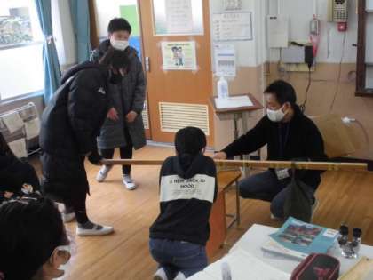 物を持ち上げたり移動させたりする道具に「てこ」があります。「てこ」には支点,力点,作用点といった点があることを学習しました。その後,実際に力点に力を加えておもりを持ち上げてみました。力点や作用点の位置が変わると,手ごたえが大きくなったり小さくなったりすることが分かりました。