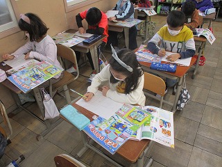 2年生は図画工作で「まどをひらいて」の学習に取り組んでいます。今日はどんな作品にするのかデザインを考えました。教科書にのっている作品を見ながら,どんな窓にしようかな,窓から何が見えると楽しいかな…じっくり考えながら,思い浮かべたことを絵に表していました。どんな作品になるか楽しみです。