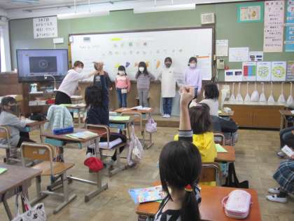 どちらのクイズも,みんな耳をよくすませて,単語を聞き取ったり,“What's this?”のフレーズをしっかり言ったりして,英語に親しんでいました。