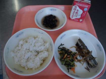 子供たちから,「『だいこん葉のごまいため』は,ごまの風味で美味しかったです。『黒豆』は,煮汁が甘くて黒豆もやわらかくて,味がしみこんでいて,美味しかったです。」と,感想をくれました。