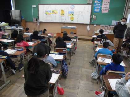ウサギとキツネはどんぐりを拾いに行きました。キツネはたくさん見つけたけど隠して,見つからなかったとウソをつきました。しかし,ウサギは2つしか見つけられなかったのにその内1つをキツネに渡しました。その優しさに触れたキツネの目から涙がこぼれました。これからお互いに助け合っていくことの大切さをみんなで考えました。