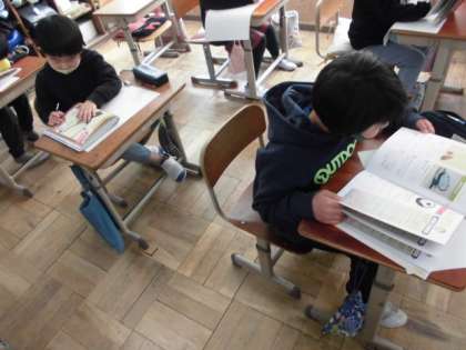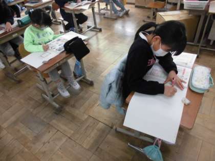 自分が興味をもった昔の道具の中から1つ選んで,紹介するための新聞を作りました。電話や暖房器具など今とは全然違うものがたくさんあります。本などの資料をもとに詳しく調べたり挿絵を入れたりといろんな工夫が見られました。