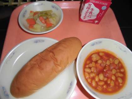 子供たちから,「『大豆と鶏肉のトマト煮』は,大豆と野菜のうま味があり,トマトの味がおいしかったです。『野菜のホットマリネ』は,野菜がシャキシャキしていて,りんご酢の味でさっぱりしていて,おいしかったです。」と,感想をくれました。