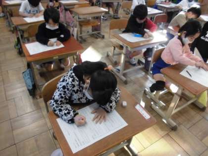 教科書を読んで,どんな人が出てくるのか,どんなお話なのか,考えて書いたものを読み返して,お直しをしました。出来上がった下書きをもとに次の時間から清書していきます。