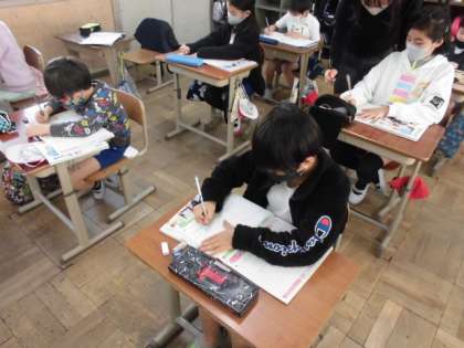 道徳の時間には,おなかの中にいる赤ちゃんの様子を想像しながら,新しい命について考えました。おなかの中の赤ちゃんに対して「早く生まれてきてね」「生まれたら一緒にごはん食べようね」といった優しい思いが聞かれました。