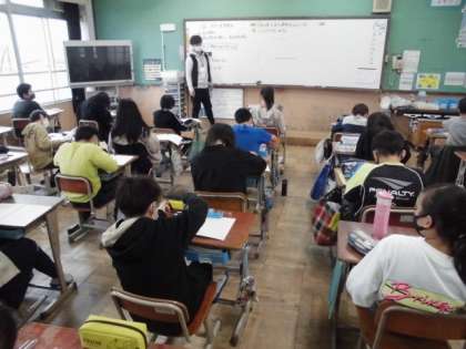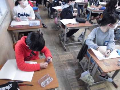 コンパスを使って円を描き,その円を使って正六角形を書きました。分度器で60度測り,印をつけていきます。半径を伸ばして直径にしたりコンパスを使ったりして自分なりに工夫している姿も見られました。